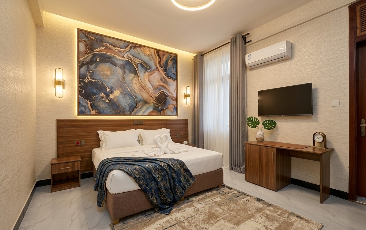 Emoos Hill Hotel, Ultimate sanctuary of style where accented lighting and rich textures converge to redefine five-star comfort in the heart of Arusha.